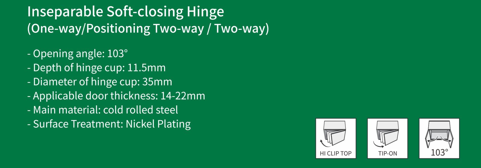 Bản lề đóng êm không thể tách rời (Một chiều/Định vị Hai chiều/Hai chiều)