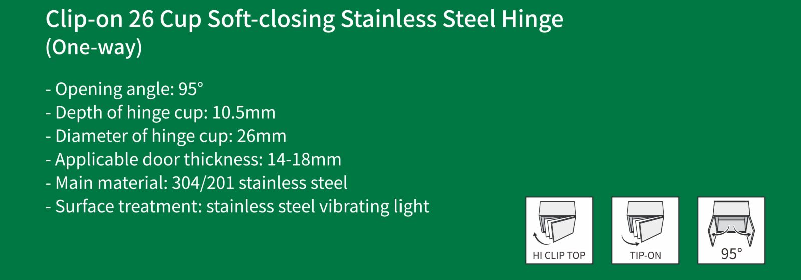 Bản lề thép không gỉ đóng êm 26 cốc dạng kẹp