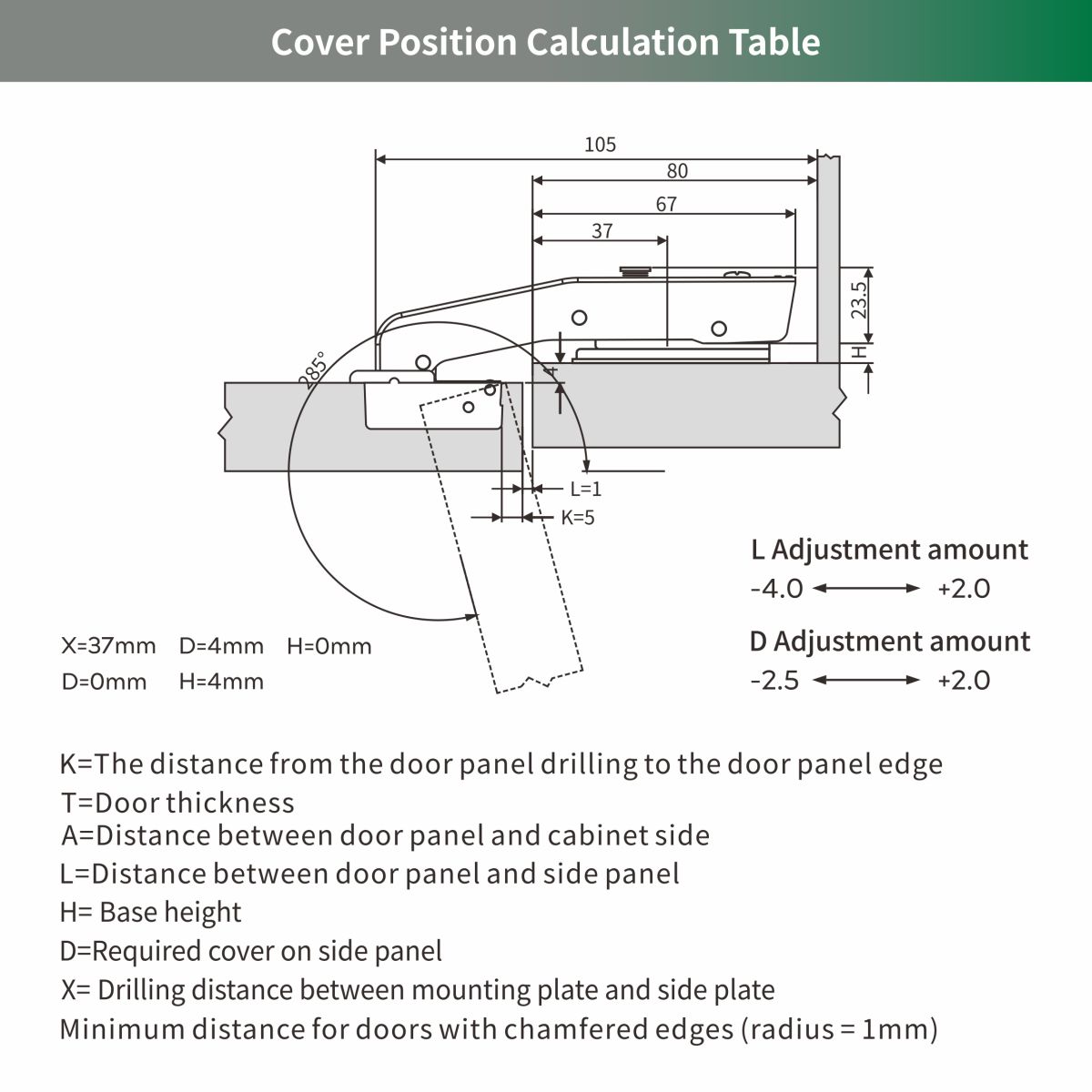 Bản lề giảm chấn dùng cho tủ góc dương 45 độ
