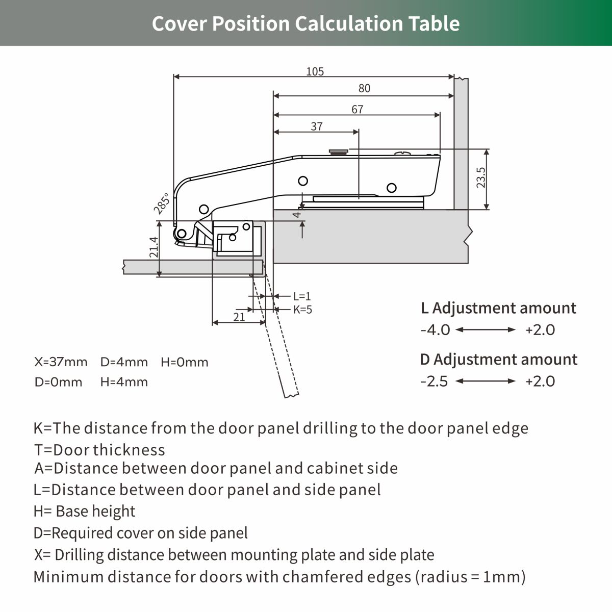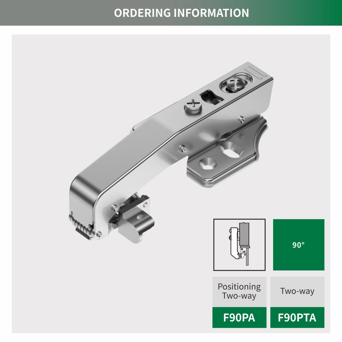 Bản lề đóng êm Khung nhôm góc đặc biệt 90° không thể tách rời (Định vị hai chiều / Hai chiều)