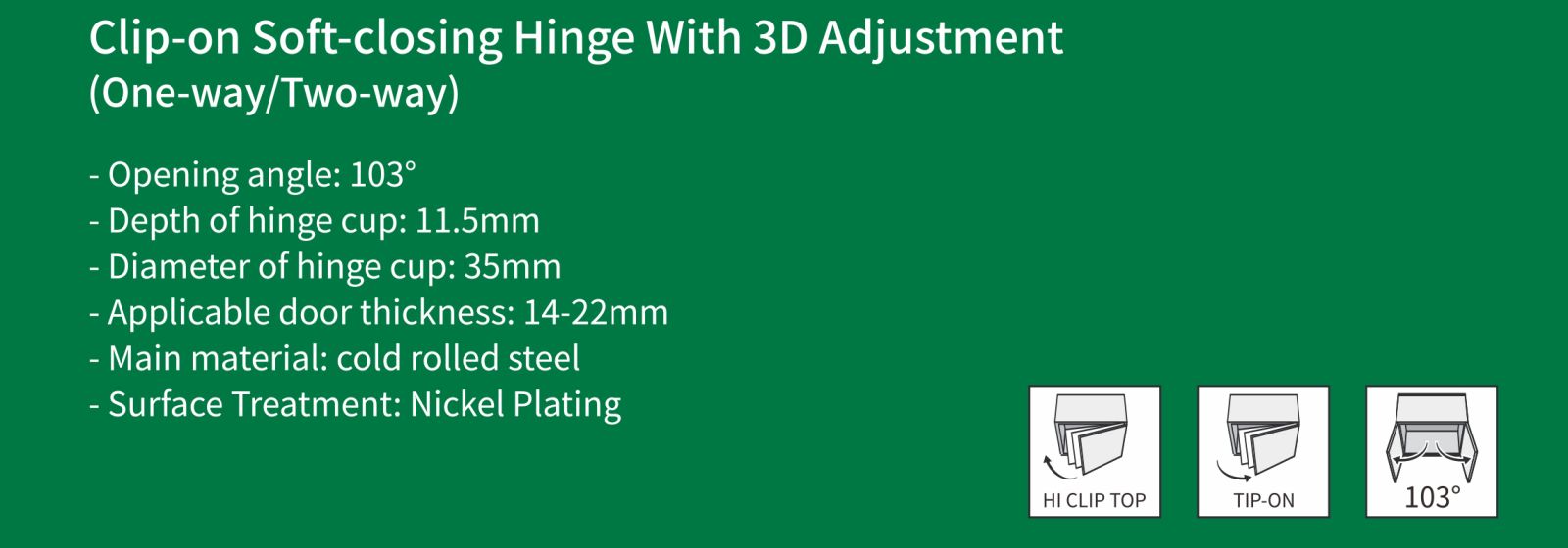 Bản lề đóng êm Clip-on có thể điều chỉnh 3D (Một chiều/Hai chiều)