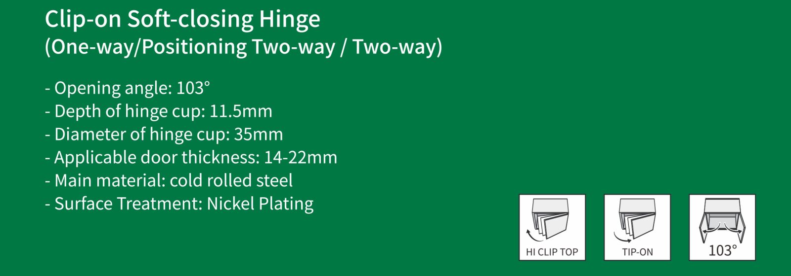 Bản lề đóng êm Clip-on (Một chiều/Định vị Hai chiều/Hai chiều)